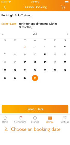 Students can book lessons via Mobile App according to their own schedule.