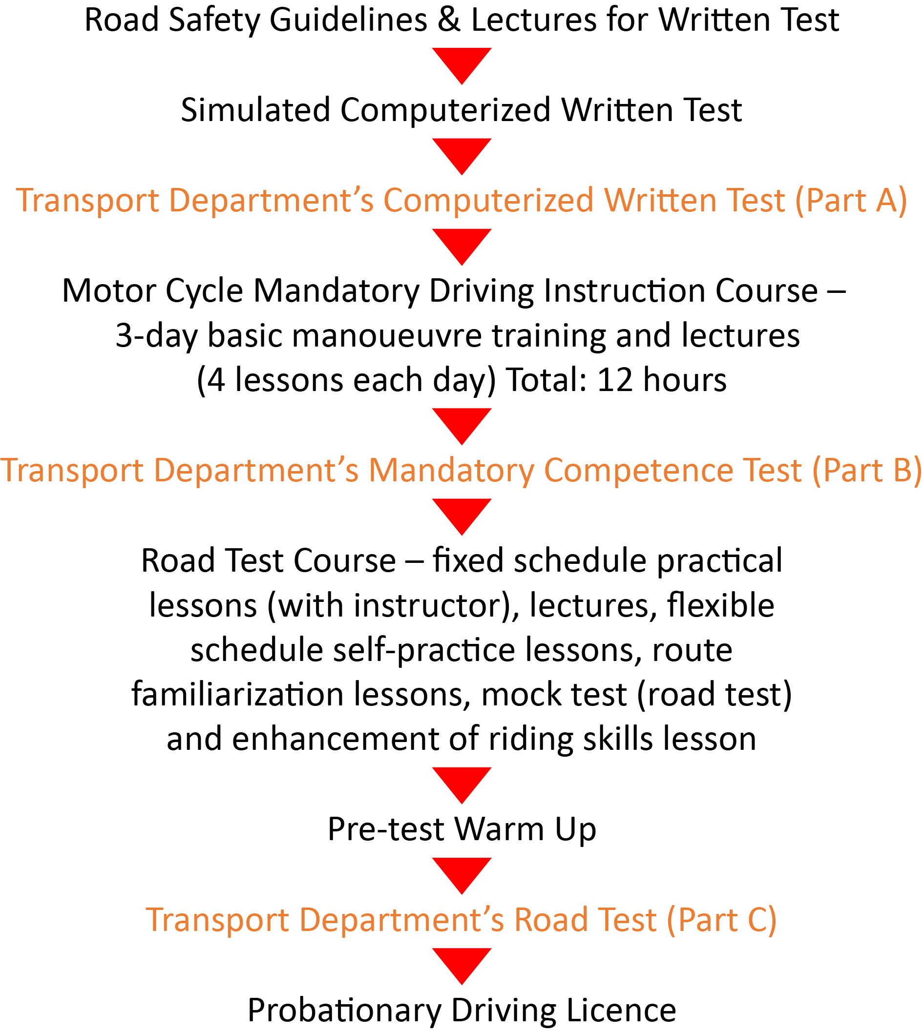 Under the guidance of our instructors, student will learn how to handle a motorcycle in a variety of traffic conditions, develop road sense and discipline, and to anticipate what will or may happen next.